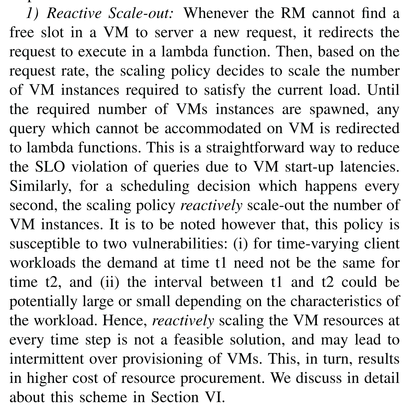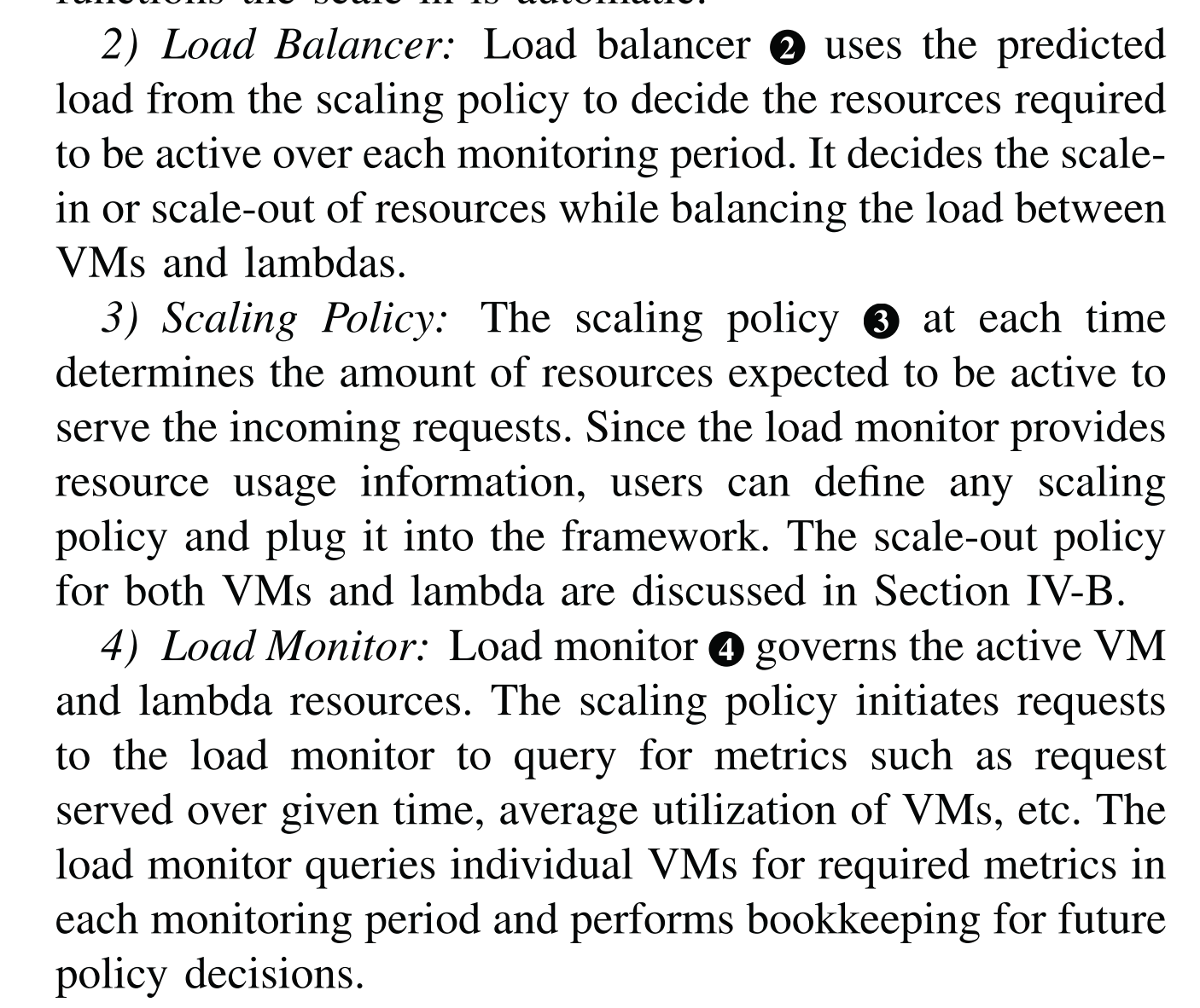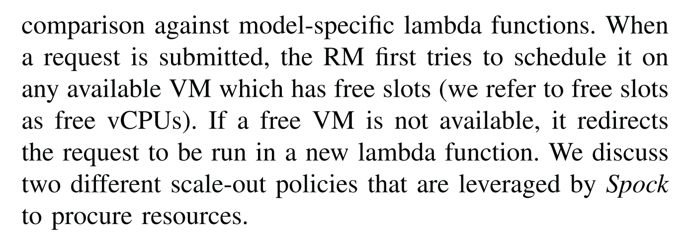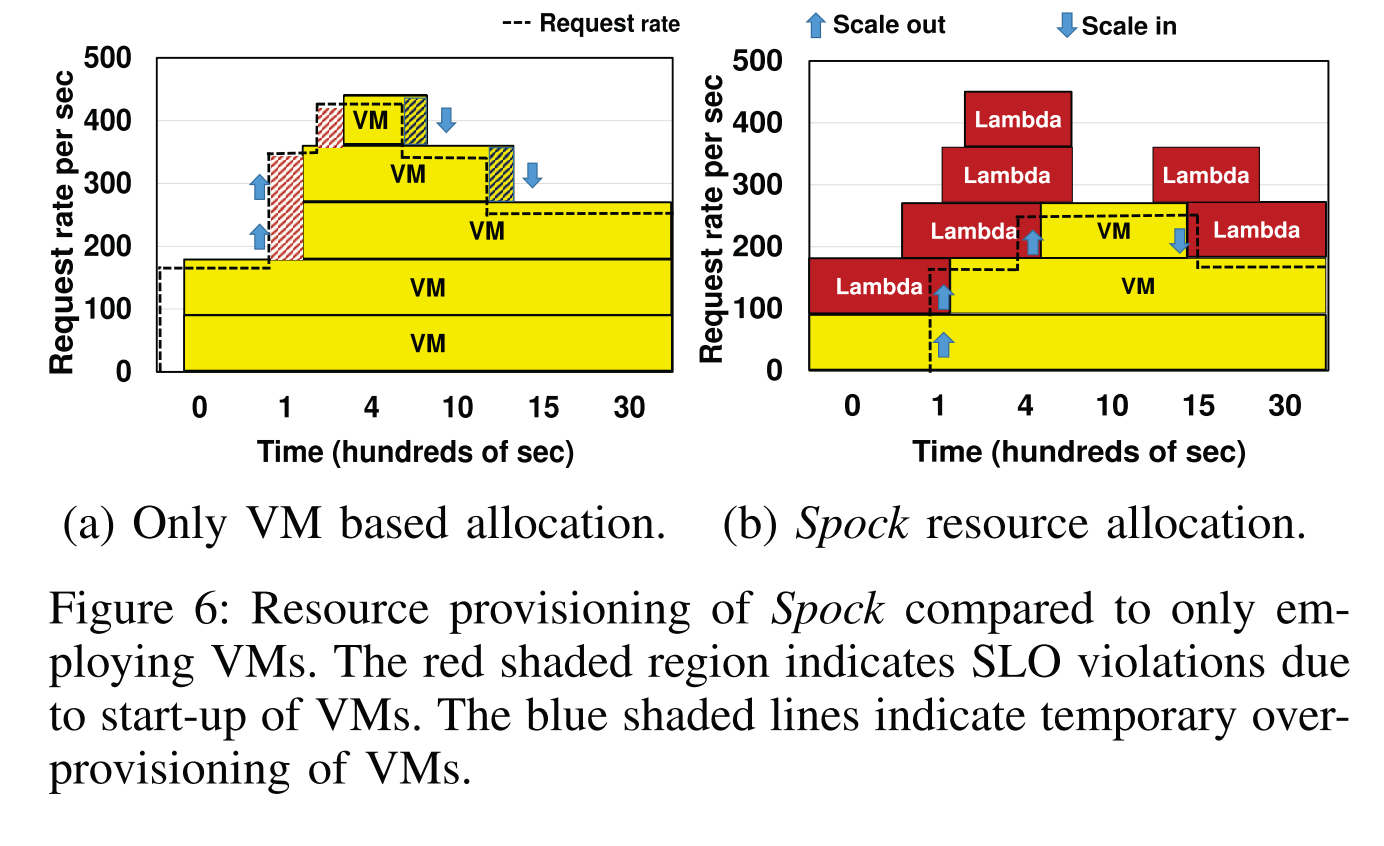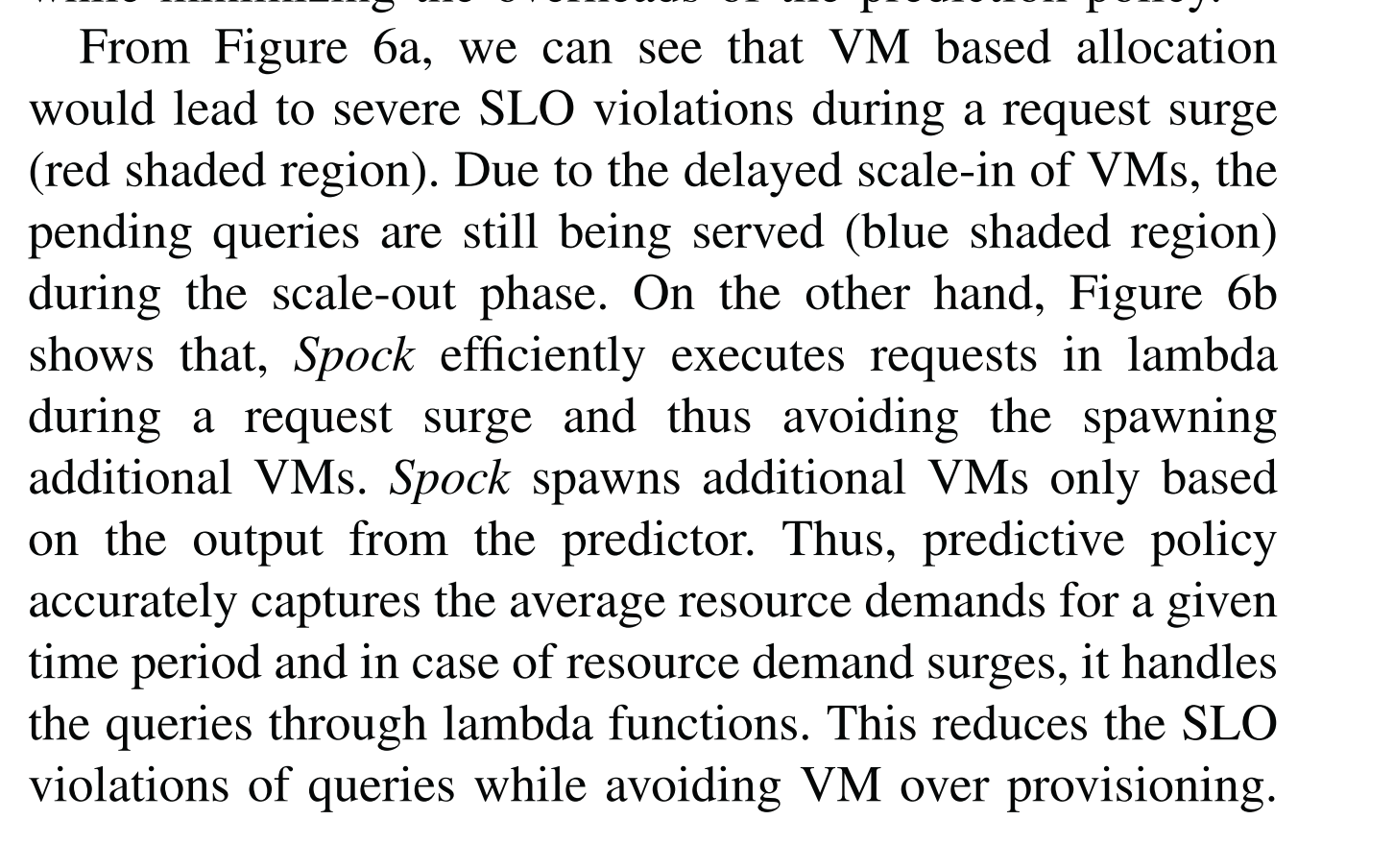 VM에 자리가 없으면 lambda 에서 하게 한다. 처음에 VM이 안되면 lambda에서 일어난다. 그래야 SLO violation을 줄이기 때문이다. lambda에서 할 경우의 단점을 말하는 거 같다. higher cost of resource procurement이 일어난다. lambda의 단점인가.