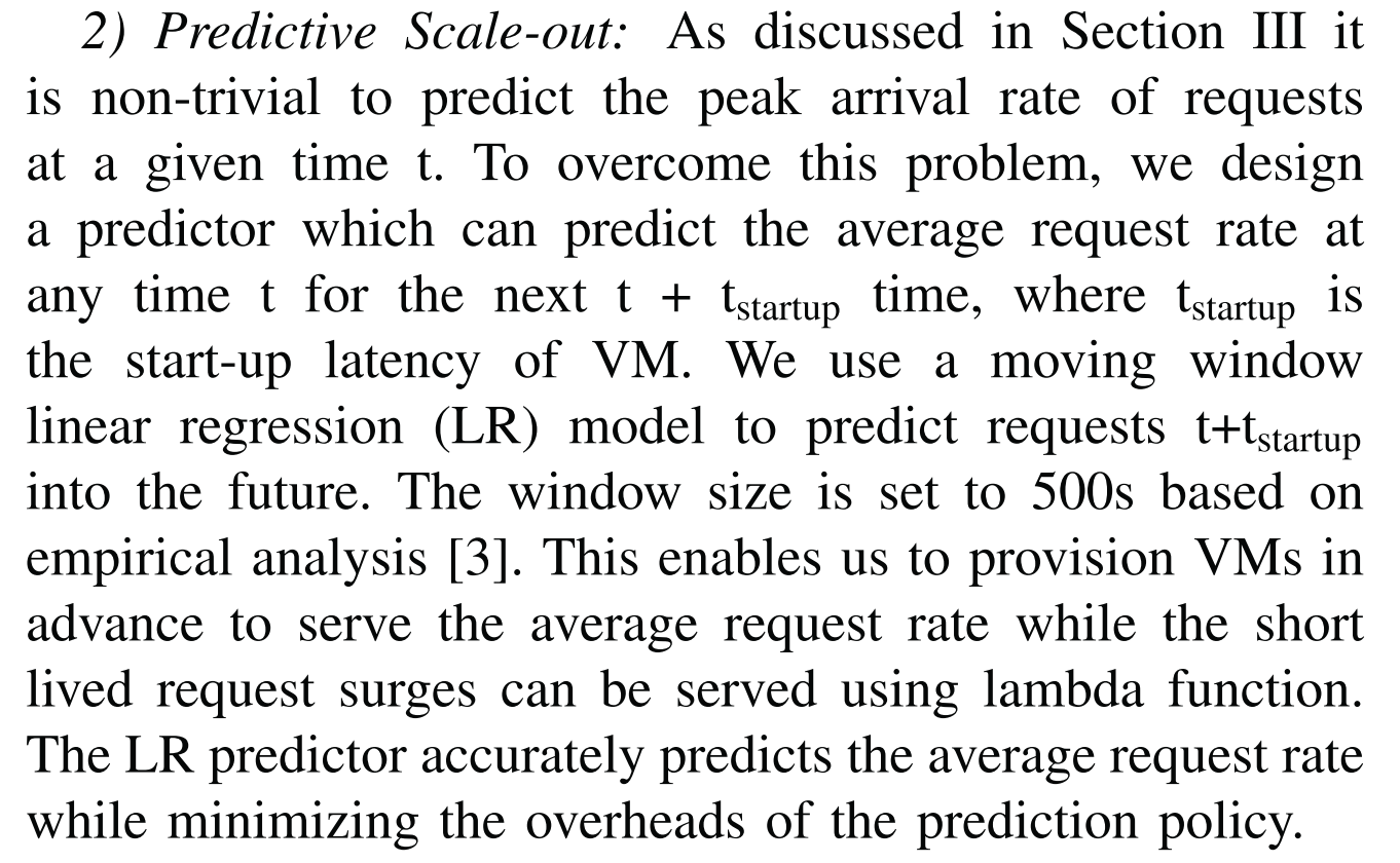 moving linear regression model을 써서 기존 t에서 다음꺼를 쓴다. 이렇게 해서 peak arrival rate of requests를 할 수 있는 거구나. 오 비슷하고 기억이 나네