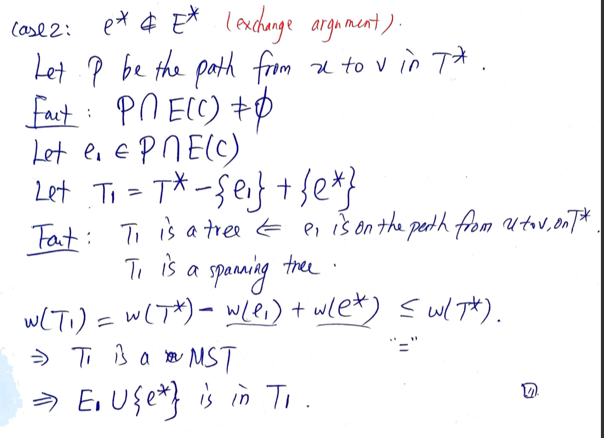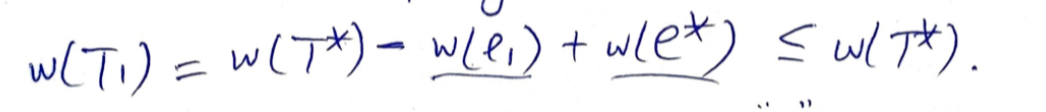 T1 는 MST 인데 e1 이 e * 보다 더 작기 때문에 MST 이다.