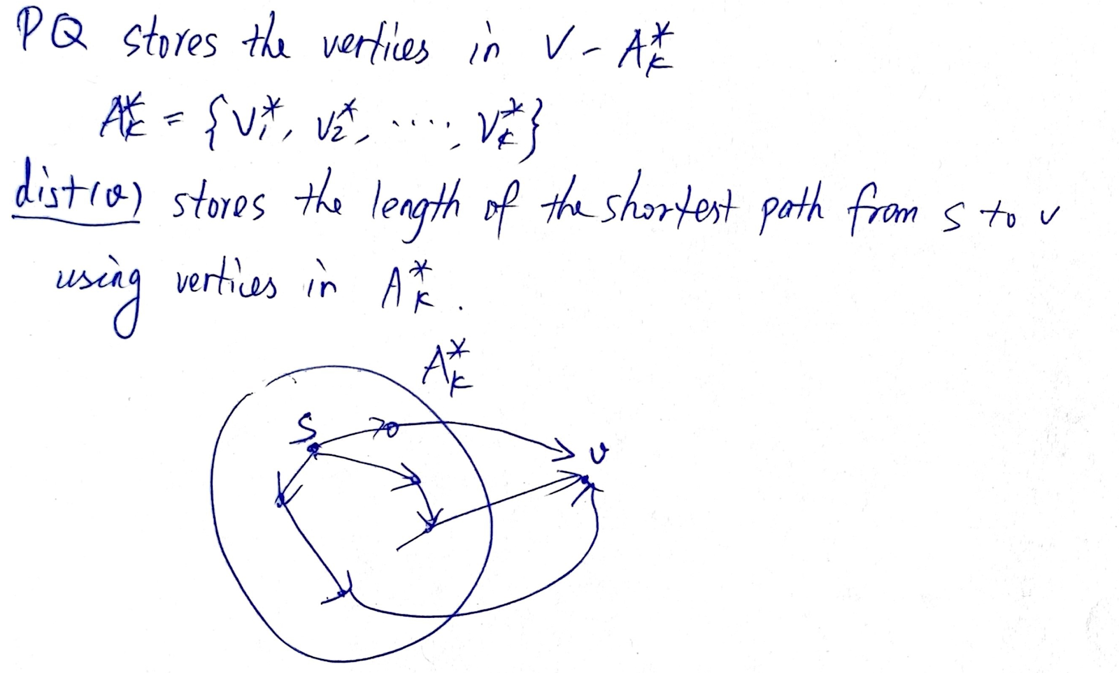 PQ stores the vertices in V - Ak* (전체에서 A를 뺀 것)