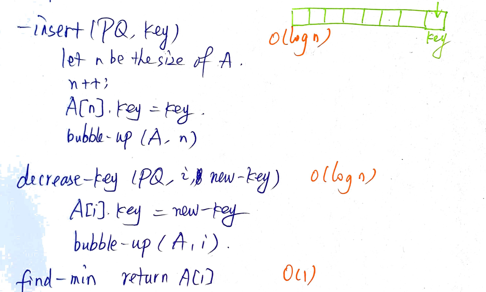 delete min, decrease-key, insert -> log(n)
