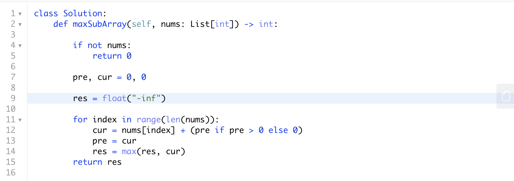 Given an integer array nums, find the contiguous subarray (containing at least one number) which has the largest sum and return its sum.