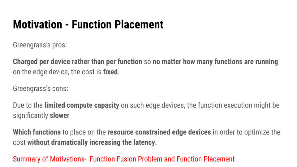 So what this paper proposes as motivation are two: 1. Function Fusion Problem and Function Placement.