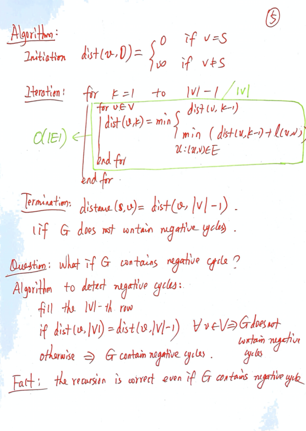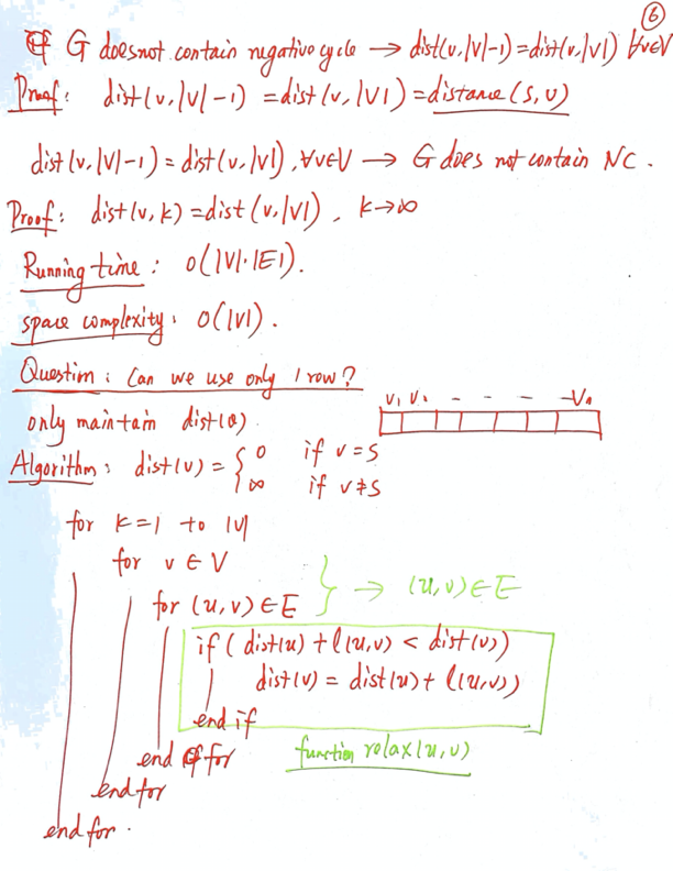 G가 Negative CYcle을 가지는지 확인해보려면 V번 돌릴떄랑 V-1번 돌릴때랑 distance 의 값이 똑같은지 확인해보면 된다.