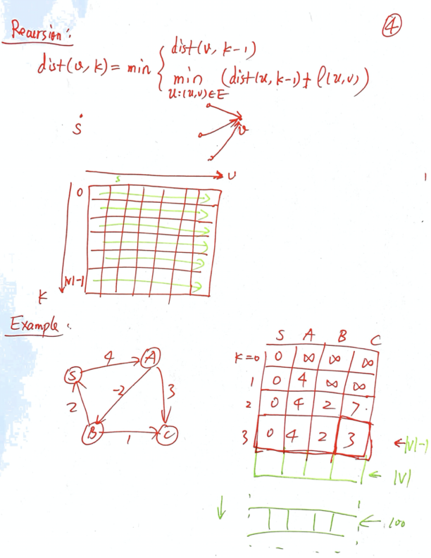 위의 식을 보면 전 단계까지 돌린 distance 이든지 전 단계에서 + weight를 추가해서 최소를 가져가면 된다.