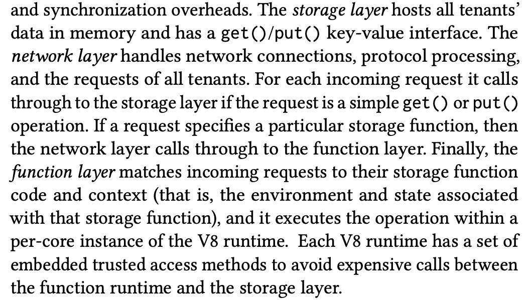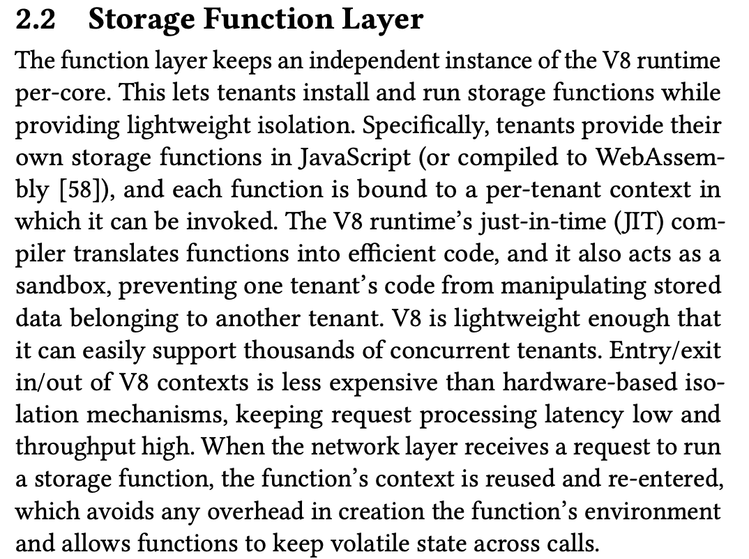 Each V8 runtime has a set of embedded trusted access methods to avoid expensive calls between the function runtime and the storage layer