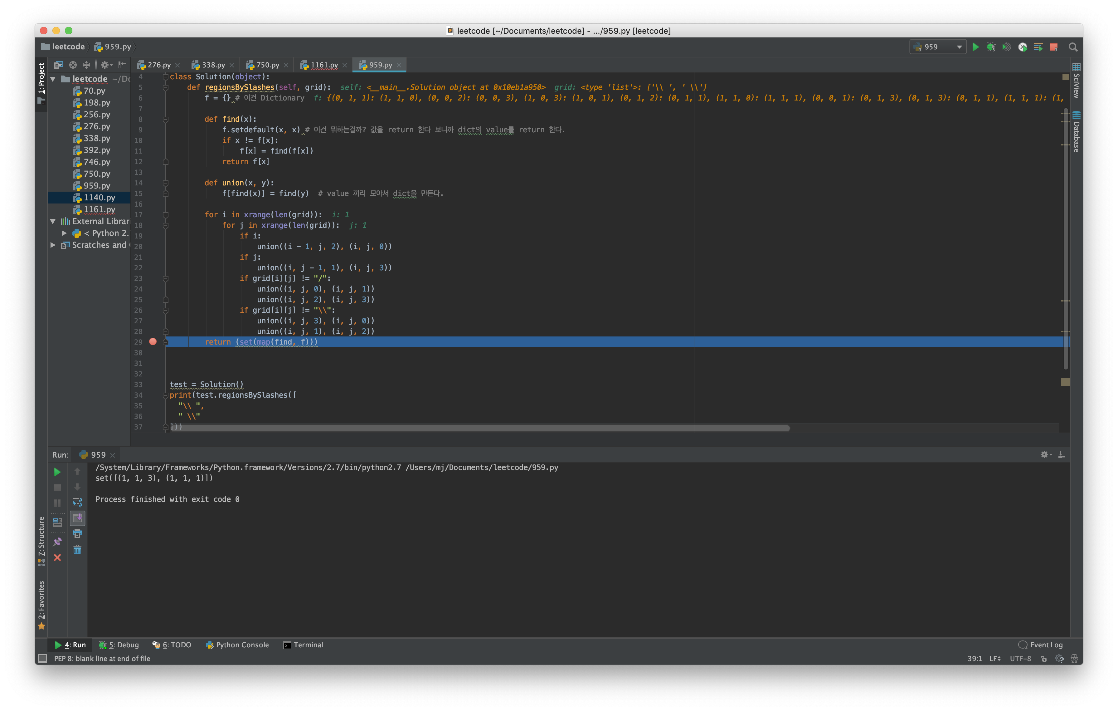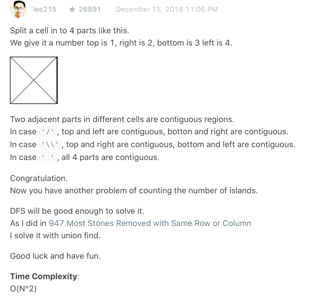 Input: [ "\\/", "/\\" ] Output: 4 Explanation: (Recall that because \ characters are escaped, "\\/" refers to \/, and "/\\" refers to /\.) The 2x2 grid is as follows: