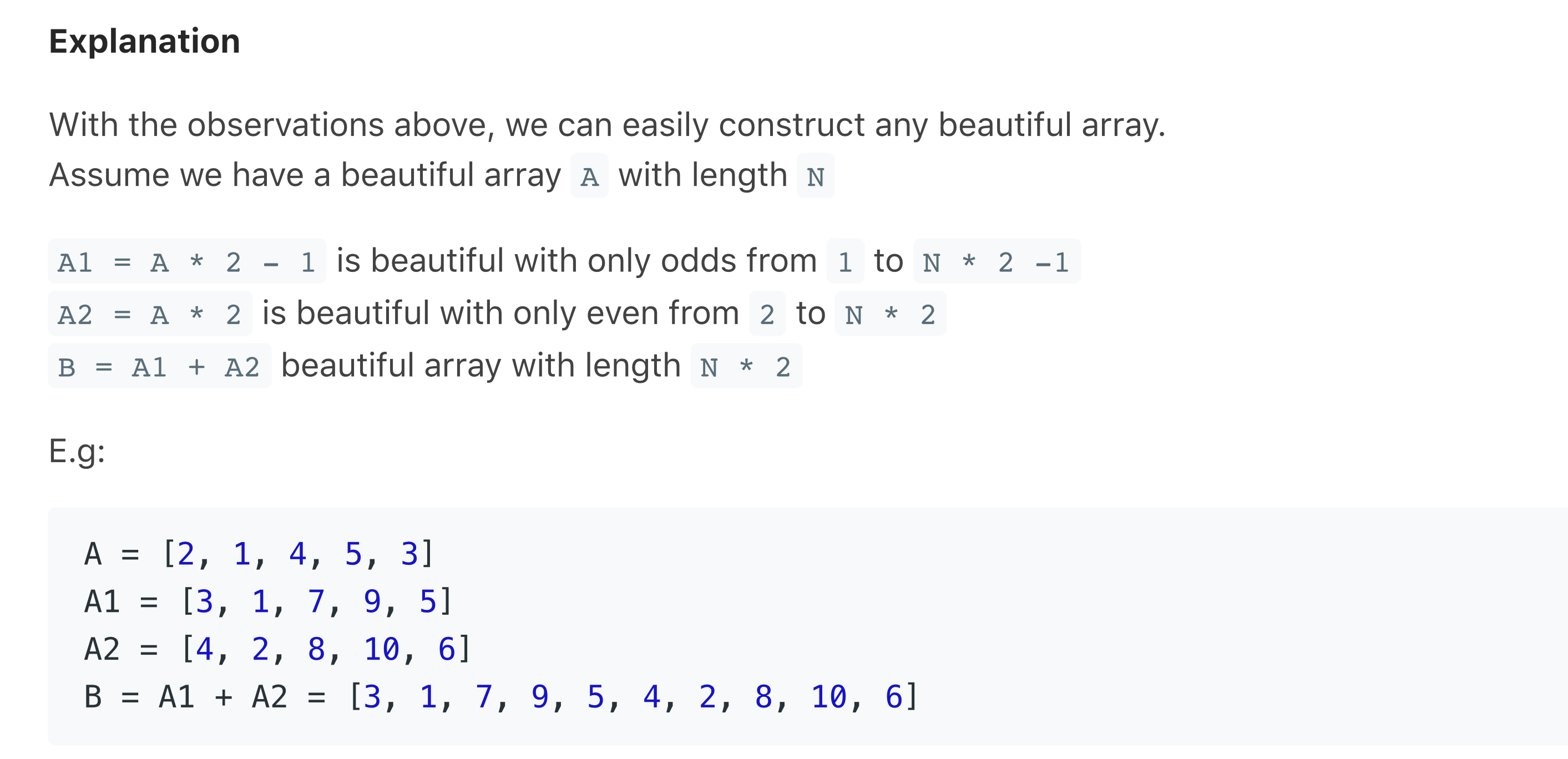 Given N, return any beautiful array A. (It is guaranteed that one exists.)