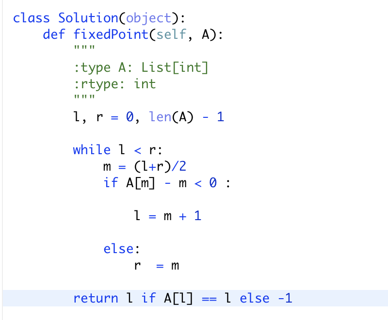 return 값이 l 이고 물론 조건이 A[l] == l 이어야하네