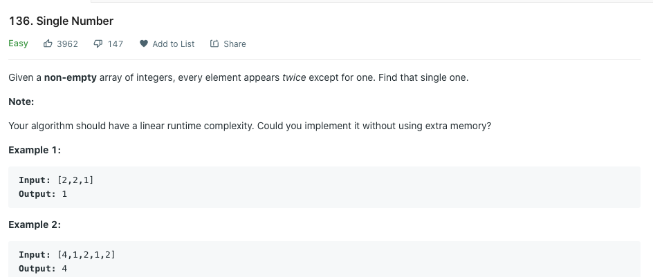 Single Number 136 본문