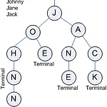 trie 혹은 prefix tree라 함은, 주로 스트링을 가지는 동적 셋 혹은 연관 배열을 저장하는데 사용되는 정렬된 트리 자료구조를 의미한다. 이진 검색 트리와는 다르게, 트리상에서의 노드들은 그 노드와 연관된 키를 저장하지 않는다. 이 대신, 트리상에서의 위치가 현재의 키를 나타낸다. 특정 노드의 모든 후손들은 그 노드에서와 동일한 prefix를 가지며, 루트 노드는 빈 문자열을 갖는다. 값은 모든 노드에서 존재하는 것이 아니고, 말단 노드(leaves) 혹은 특정 키에 해당하는 내부(inner) 노드에서만 존재한다. prefix tree의 공간사용을 최적화 하기 위하여, compact prefix tree가 구상되었다. trie라는 단어는 reTrieval이라는 단어에서 유래하였다. Trie를 왜..