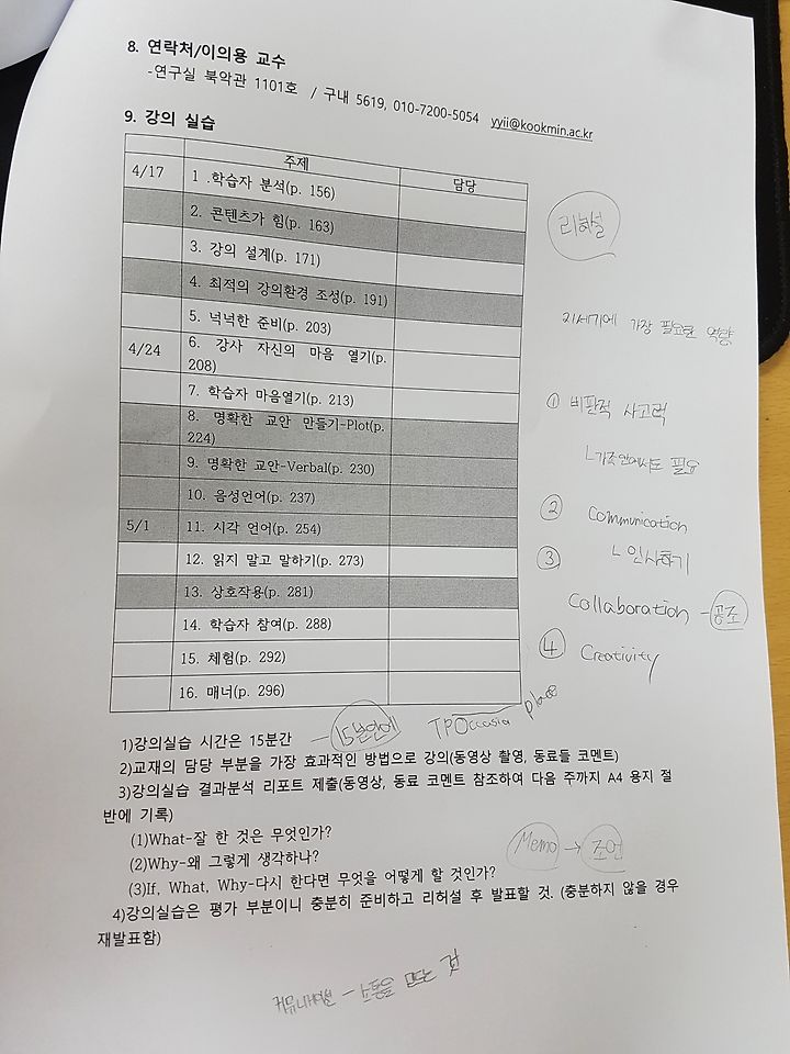 나는 최적의 강의환경 조성 p191을 맡게 됐다.